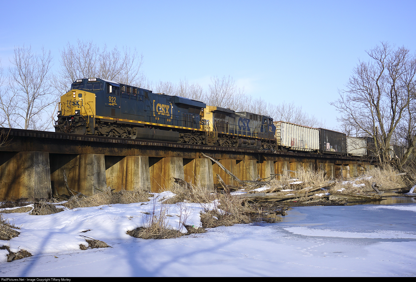 Our daily CSX construction garbage train crosses the floating bridge on a beautiful winter afternoon in Central Upstate New York.