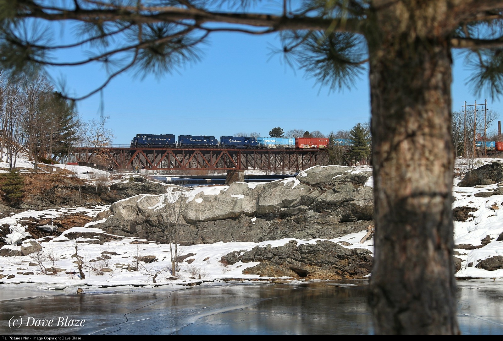 You know it's bad when you write the caption in your head before you even take the shot! But when I saw this young white pine growing along the park and walkway that borders the east bank of the Androscoggin River in Auburn I knew I just had to figure out how to frame up the train!