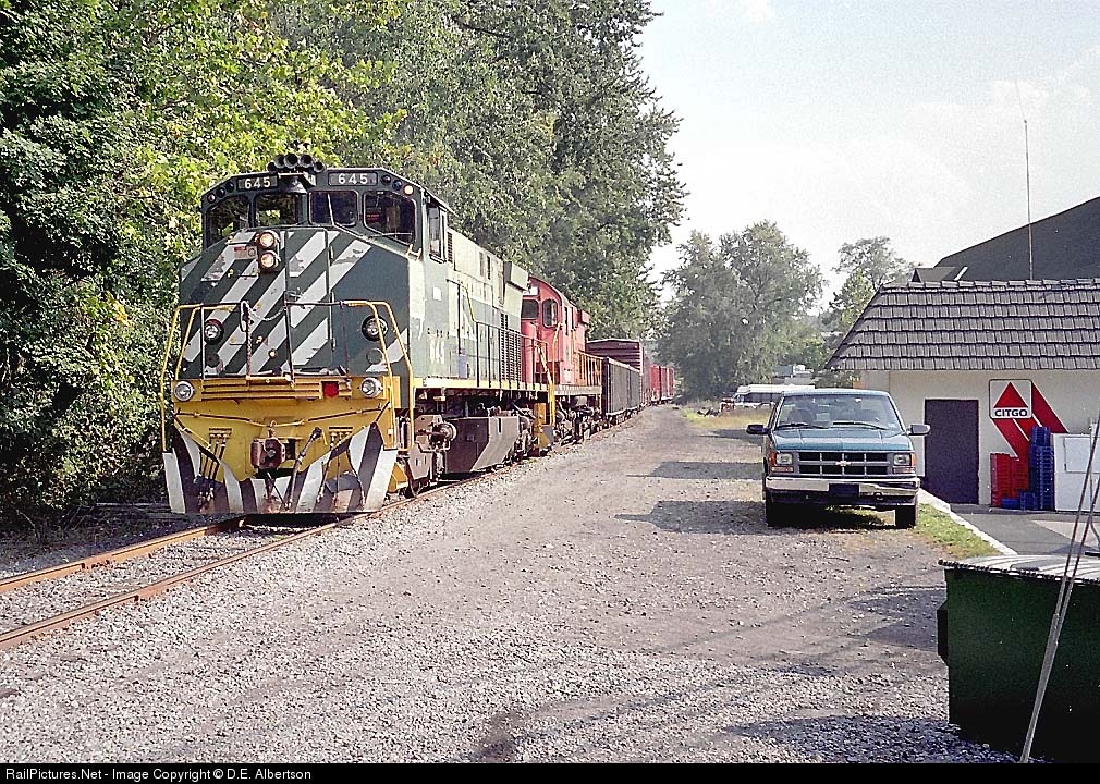 D-L's Portland Turn departs Portland with former BCR 645 and a former GBW C-424 now back to RDG 5204. 02OCT02