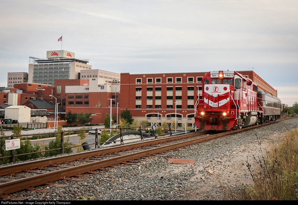October 13, 2018 brought a very neat yet odd move to the INRD, a passenger run to Indianapolis Union Station. The INRD used the Frank Thomson, a beautiful PRR car, on one of their passenger special. At the end of the day it had to be returned to go out on the Cardinal. Here is INRD 3803 waiting to go north on the LIRC with the Frank Thomson. To the left is the Eli Lilly world headquarters.
