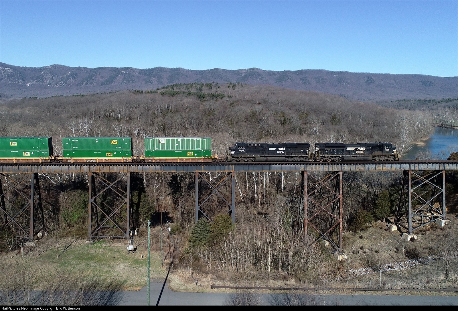 NS train 202 glides over the high trestle at Compton a chilly, but sunny Sunday morning. #716