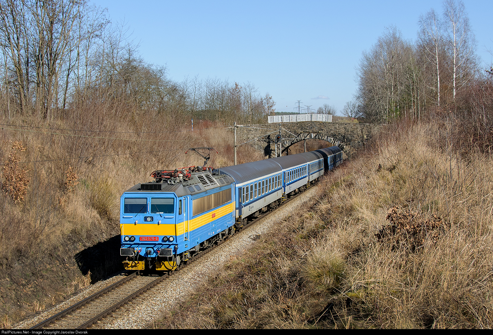 CZ / 220 Praha - Ceske Budejovice (R711 VLTAVA). Locomotive 362 078-8 in blue - yellow retro paint.