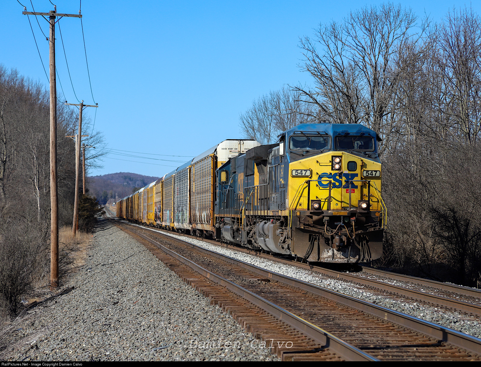 | CSXT 547, a YN2 AC44 leads Q262 southbound, trailing behind is an SD50-3 bound for NJ with 19 autoracks in tow. |