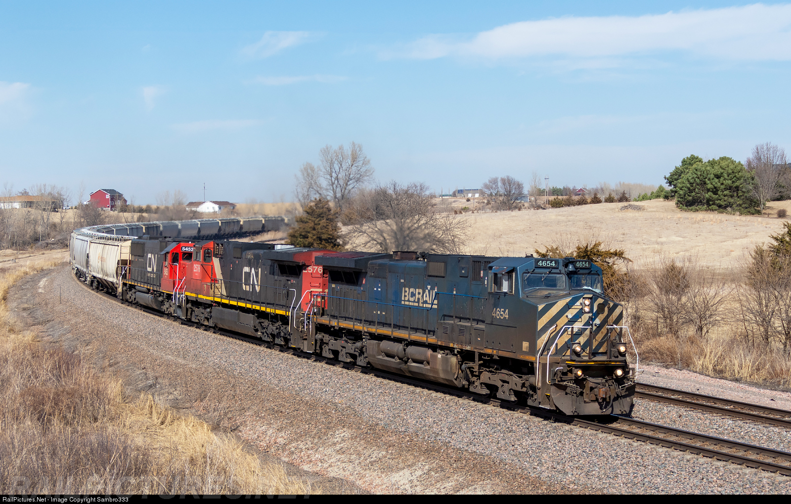 BCOL 4654 leads a solid CN lashup on the BNSF Saint Joseph Subdivision.