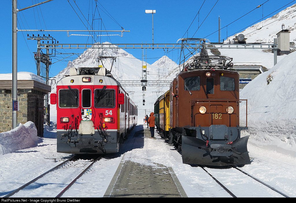 RailPictures.Net Photo: 54 & 182 RhB - Rhätische Bahn ABe 4/4 III & Ge 4/4 at Bernina, Switzerland by Bruno Dietliker