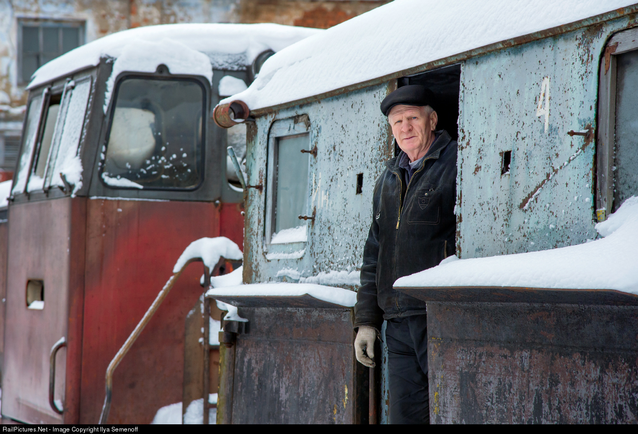 | Machinist of PS1 narrow gauge snowplow before cleaning tracks of Karinskaya railway. Snowplow PS1 was produced in the 50s of the XX century by the Demikhov plant (DMZ) in Moscow region. PS1 have an all-metal body. Snowplows PS1 were equipped with a pneumatic drive of dumps and knives. The snowplow is worked, supply by air and pushed by a locomotive. |