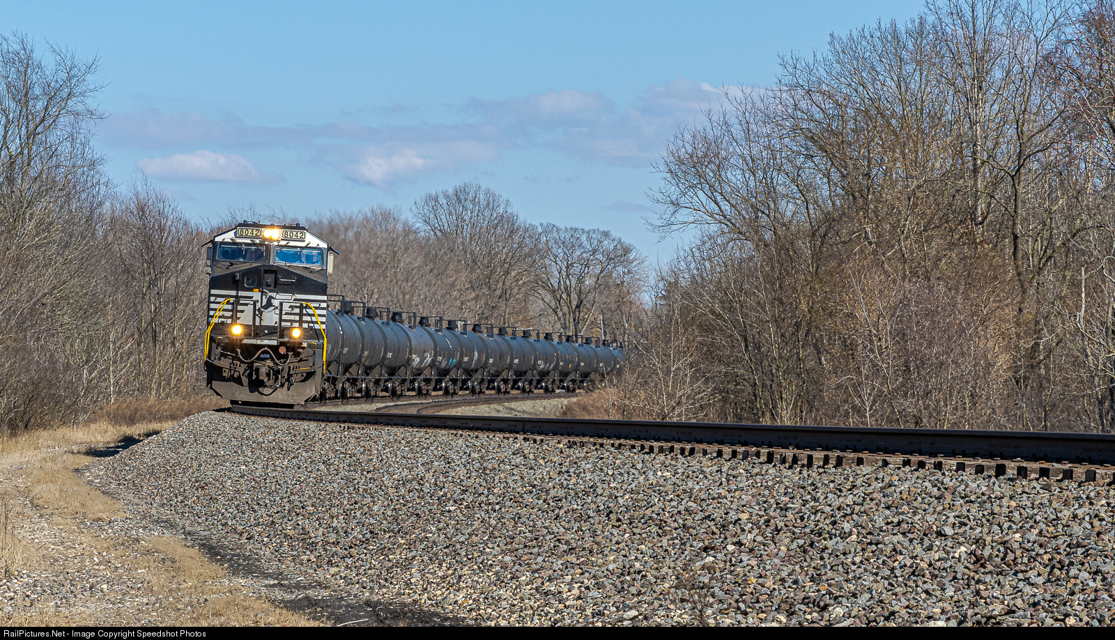 NS 8042 races down "Otis Hill" Westbound on a Sunday Afternoon with methonal cars in tow