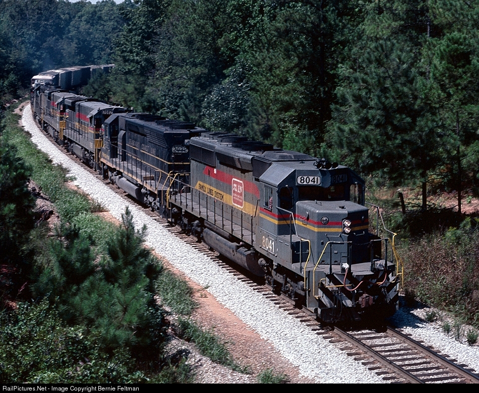 | Seaboard System SD40-2 #8041 leading its Waycross bound train #329. #8041 was built July 1979 as Seaboard Coast Line #8041 and would later become CSX #8041. CSX selected #8041 for its SD40-3 rebuild program and it became CSX #4019 |