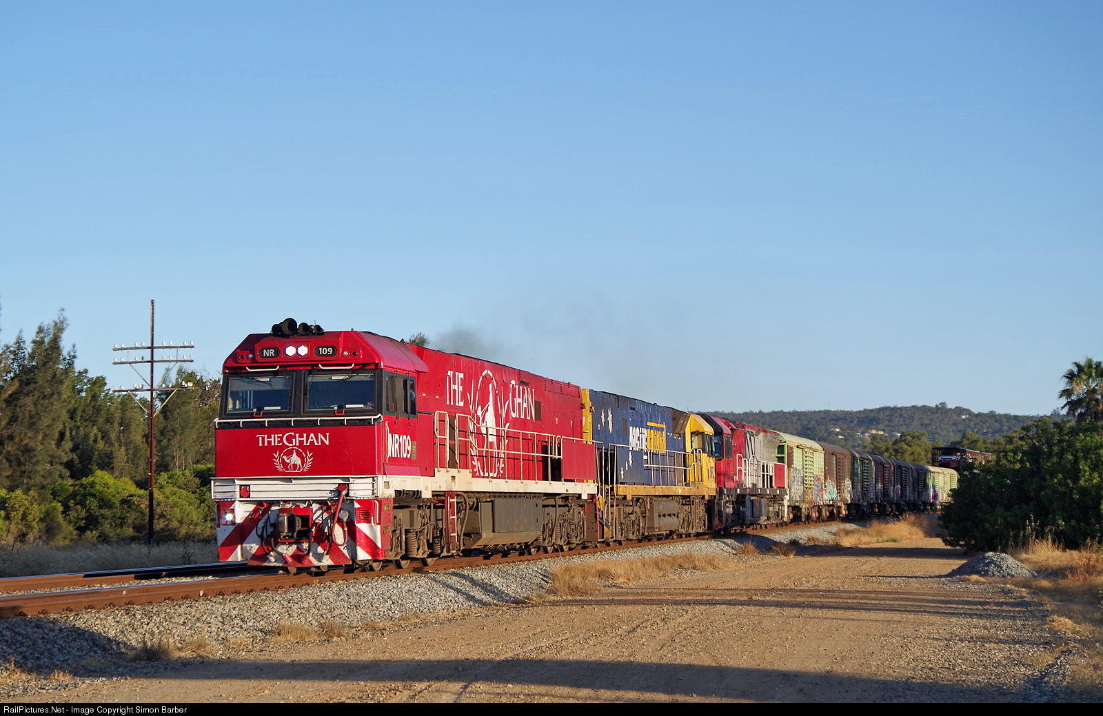 NR109, NR2 and MRL005 roar through Stratton with a Melbourne bound freighter.
