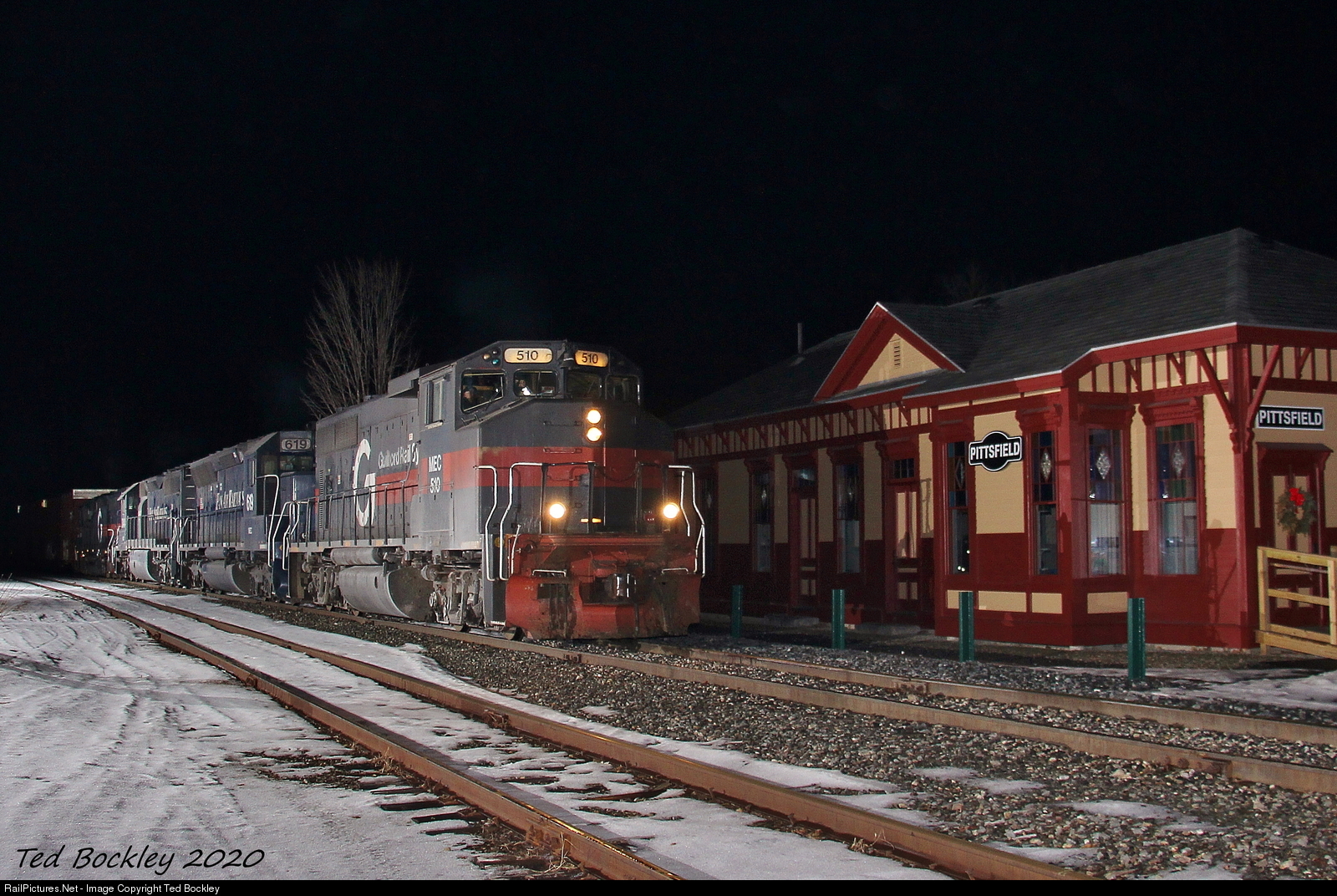 Pan Am's Waterville - Northern Maine Jct rolls passed the repainted MEC depot in the center of town. WANM has a mixed bag of EMDs on this night: GP40-2W leading a remotored SD45, SD40-2, and GP40.