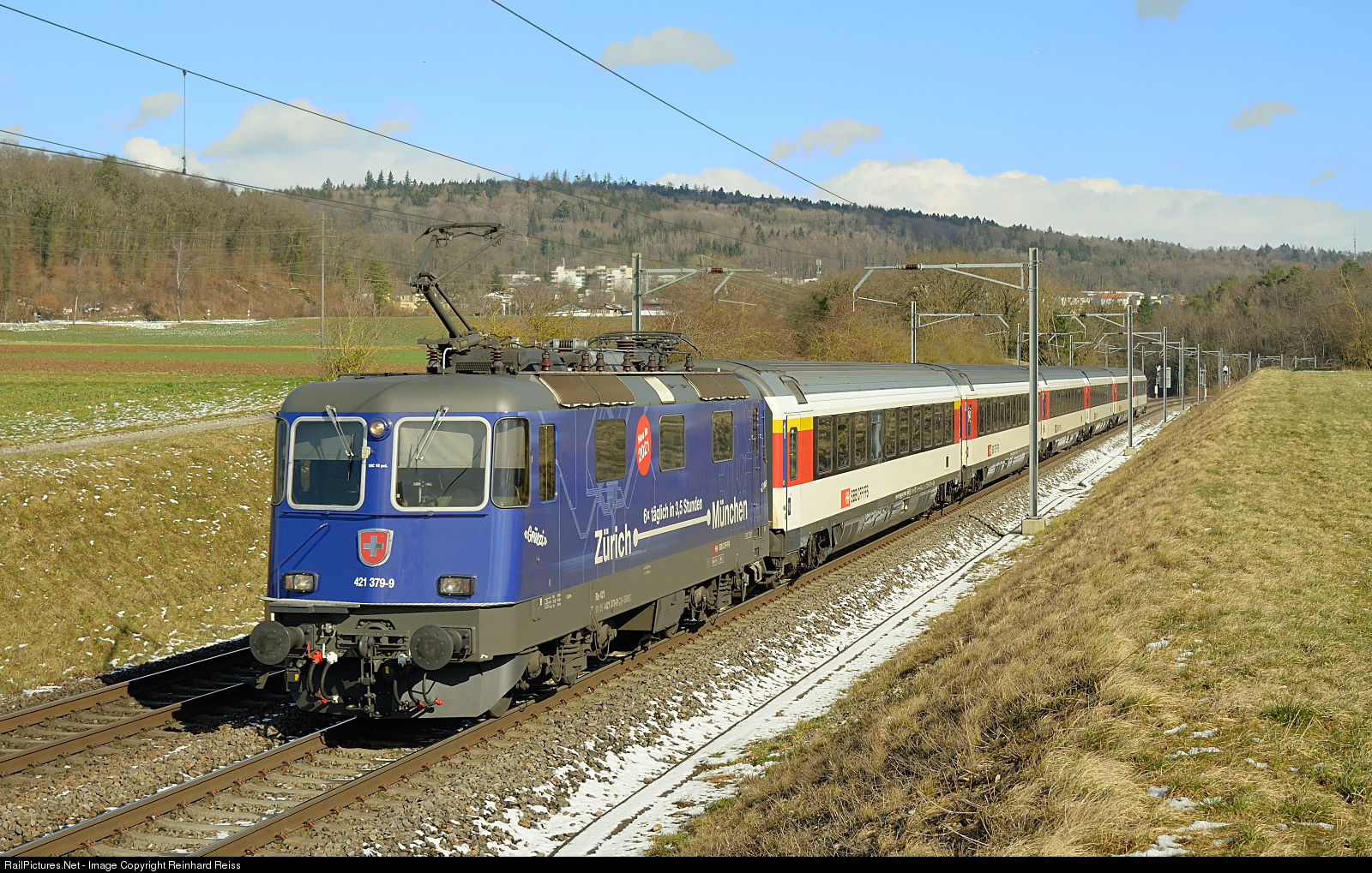 Re 4/4 II 421 379 leads IC 183 from Singen to Zurich.