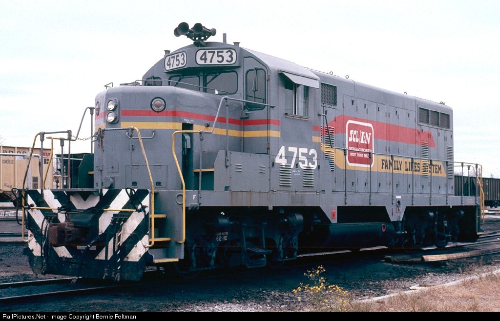 | Seaboard System GP16 #4753 at Hulsey Yard. #4753 was built February 1952 as Seaboard Air Line GP7 #1797 and later became Seaboard Coast Line #977. Unit was rebuilt to GP16 March 1981 and later re# CSX #1799 and later retired April 30, 1992. |