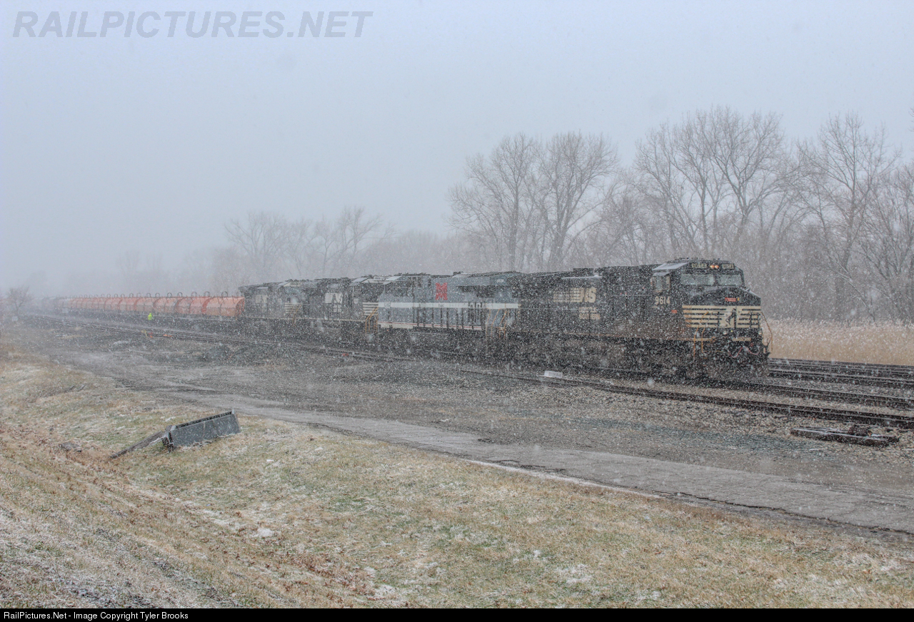 NS 9614 leads NS 280 as NS 8025 trails in Hammond Indiana as the snow gets heavier and heavier.