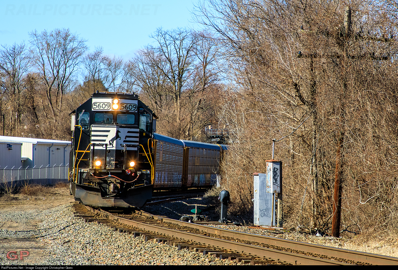 | NS EMD GP38-2, number 5609 hauls the 27W northbound, rounding into Schenectday, seen here rolling over the GE Plant switch. |