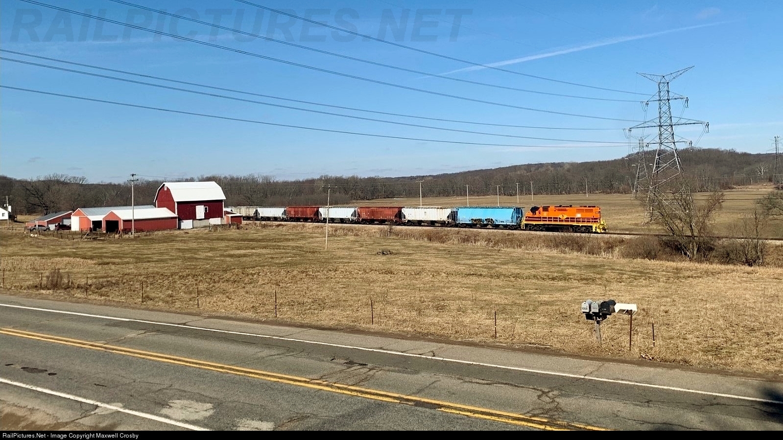 | An unusually beautiful winter day in West Michigan led to an otherwise perfect chase of the semi-daily Grand Rapids Eastern's run to King Milling in Lowell, with about a dozen or so hoppers bound for the railroad's largest customer. Loaned GP38-2 #2024 is from sister G&W and former RailAmerica property Mid-Michigan Railroad. Ironically, this unit is the former Grand Rapids Eastern 5106 that ran this line during the early RailAmerica and Railtex days. |