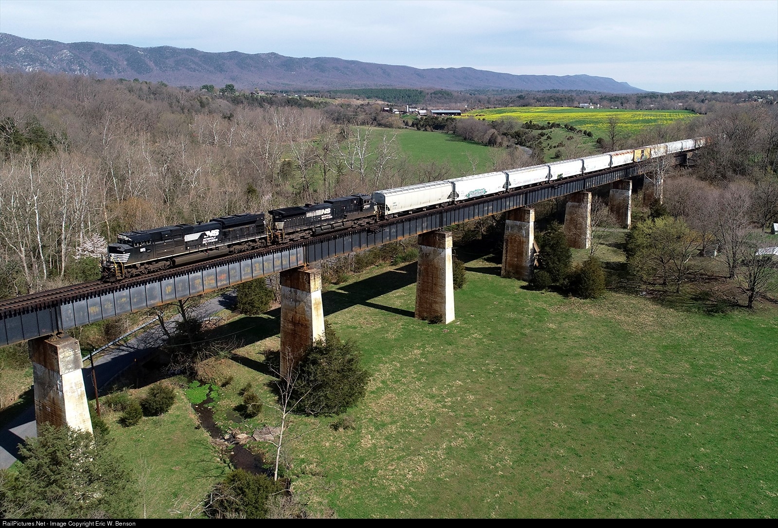 Spring has begun to arrive in the Shenandoah Valley as NS train 15T comes south. This is my kind of "social distancing!" #716