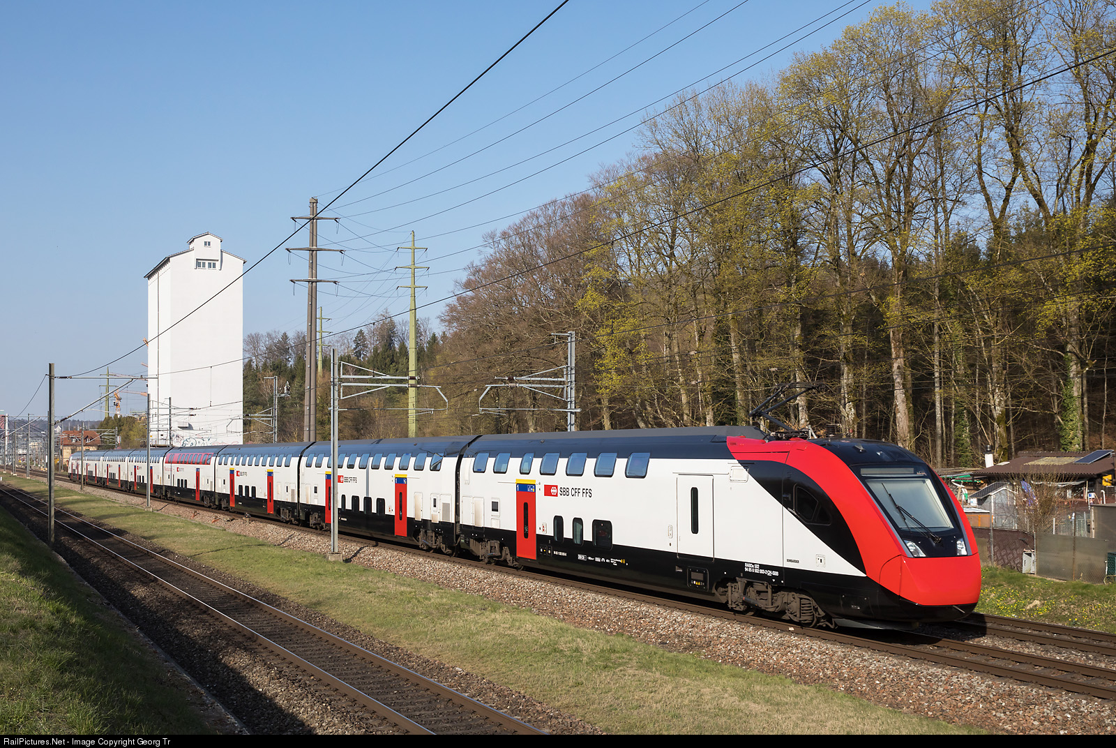 Bombardier "FV-Dosto" RABDe 502 # 003 is running the IR 3275 of the line IR 13 from Zürich via Winterthur-St.Gallen-Sargans to Chur. The train came from Basel via Aarau to Zürich as IR 2275 of the line IR 37. The train looks quite peculiar with its completely red-sprayed coupling cover.