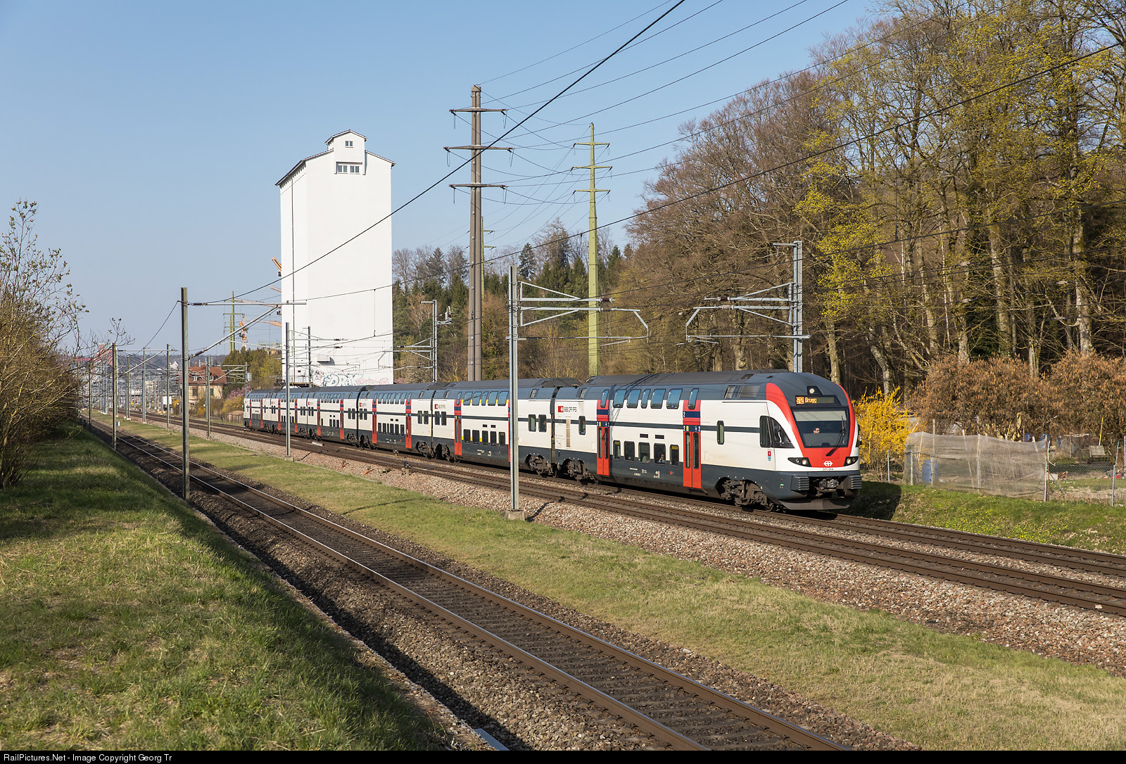 | The S 12 service from Schaffhausen via Winterthur-Zürich to Brugg (AG) is run by "DTZ" from mondays to fridays. On saturdays and sundays on this line there are RABe 511 running. RABe 511 # 014 in the grey/white "Regio Express" paint scheme is running the 19262 from Winterthur towards Zürich. |