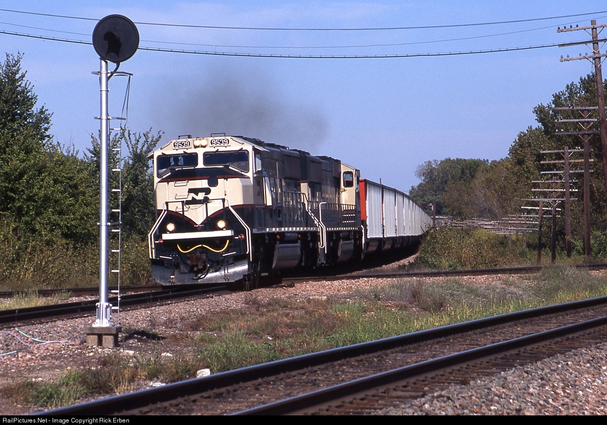 A pair of big, beautiful BN SD70MACs come rolling off the Omaha Sub in Ashland, NE with empty hoppers headed west toward Lincoln and the Powder River mines. The train is crossing the Sioux line diamond where the route from Sioux City heads either east toward Galesburg or south toward Kansas City, with the track in the foreground being the Creston Sub. A railroad with searchlight signals and codelines lent a more appealing view to my lens. Fuji Sensia.