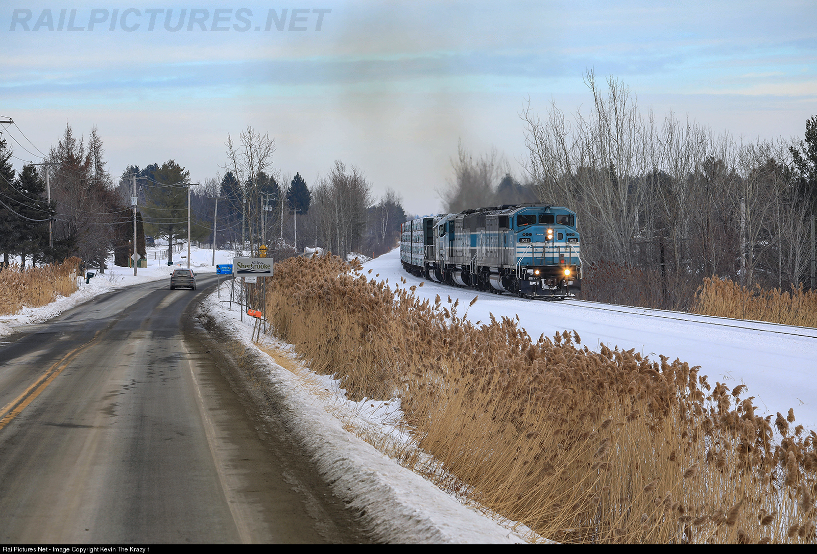 Westbound CMQ Job 1 exits the city limits of Sherbrooke.