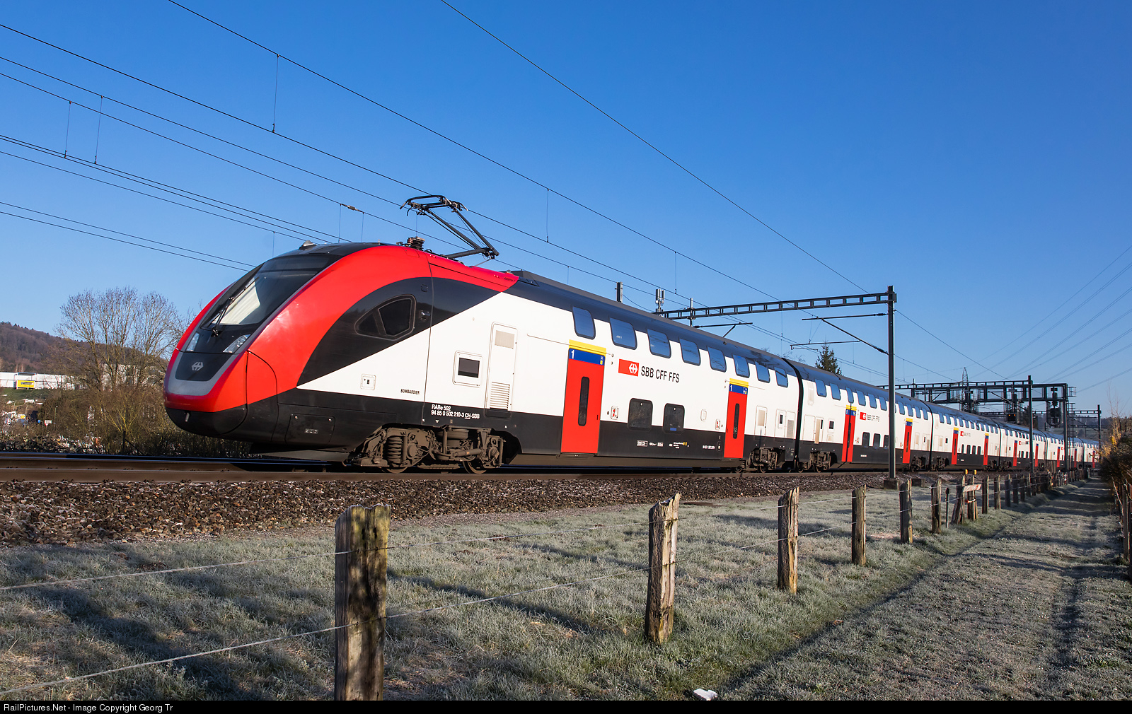 | "FV-Dosto" (doubledeck train for long distance services) RABe 502 # 210 (IR200 version) is running the IR 3258 of the line IR 13 from Chur via Sargans-St.Gallen-Winterthur to Zürich through Winterthur Tössmühle at 125 km/h. |