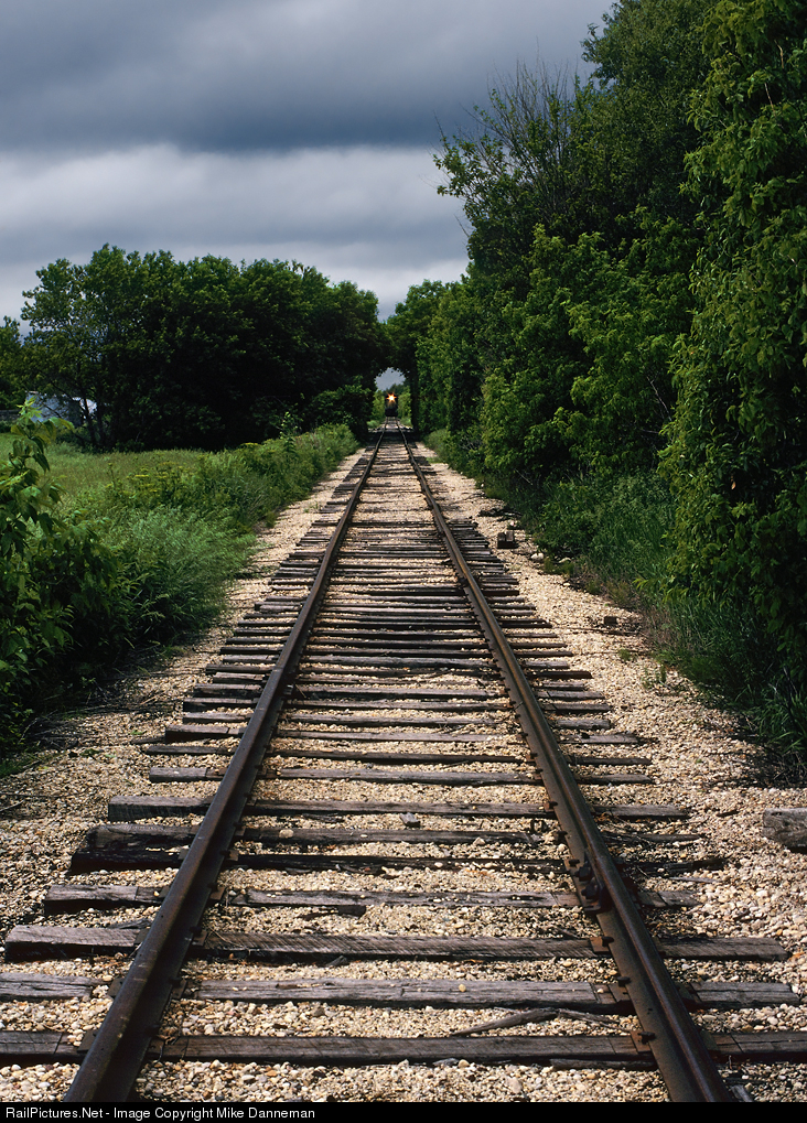 Illinois tree tunnel A Burlington Northern local approaches a “tree tunnel” as it slowly makes its way eastbound east of Shaws, Illinois, on June 10, 1984. BN operated this former Chicago, Burlington & Quincy branch from Sterling to Earlville, Illinois, known as the 10th Subdivision Branch Line of the Chicago Division. By this date, traffic was dwindling and track deteriorating, so soon, trains would not be running. The 46.8-mile long branch line would be torn up in 1985.