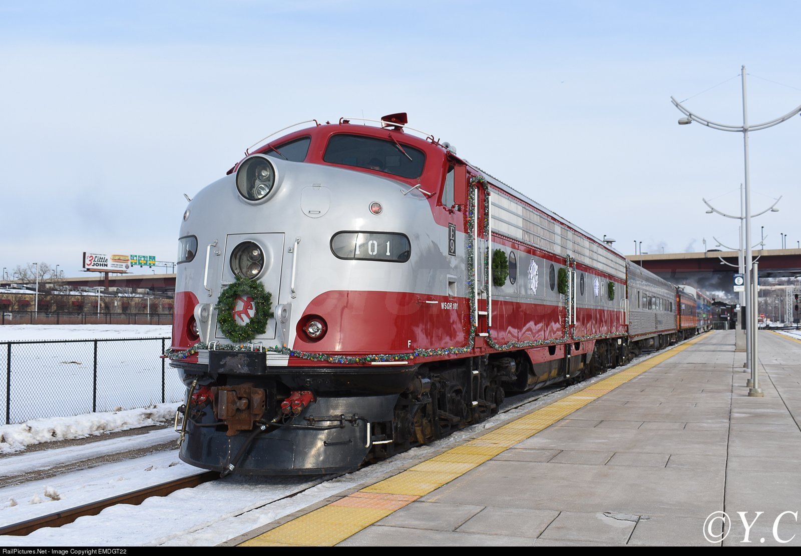 WSOR 101 brings up the rear of the Milwaukee Road #261's North Pole Express.