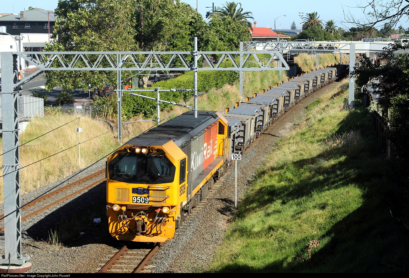 | Train 134 conveys billet steel from New Zealand Steel Mission Bush mill to the steel reinforcing plant at Otahuhu. The DL class was built to KiwiRail specifications by CNR Dalian in China from 2010 and is the most powerful diesel electric locomotive on the roster at 3500Hp. They are generally well liked by drivers but not so much by rail fans. |
