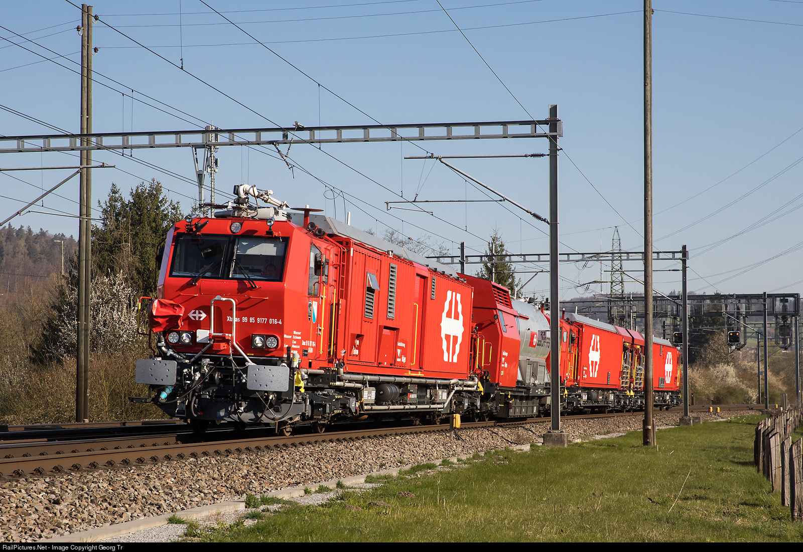 | Fire fighting and rescue train "LRZ 18" based in Zürich on a training run from Winterthur freight yard back to Zürich, in Winterthur Tössmühle. Self propelled tools vehicle Xtmas 9177 # 016, tank car Xans 9315 # 016 and the self propelled rescue vehicles Xtmas 9174 # 016 and 9174 # 026. |