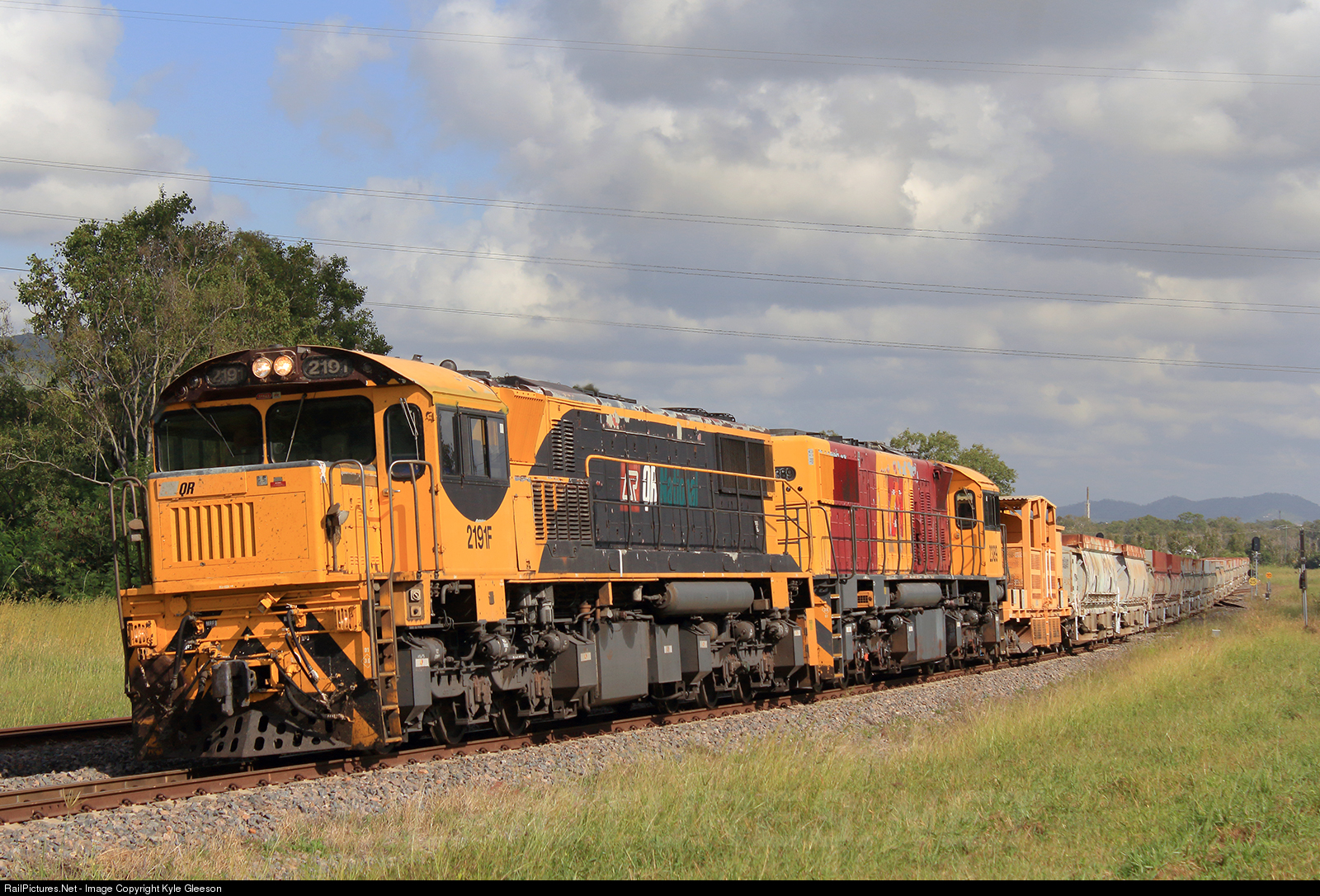 | 2191F notches up as it climbs the bank through Julago with 2389 in vehicle hauling 6752 Townsville to Acacia Ridge Sweper. 7/04/20 |