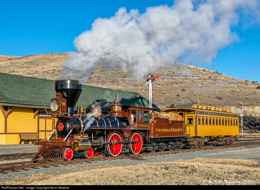 Steaming into Wabuska. Here's Virginia & Truckee Locomotive #22 "Inyo" easing onto the platform at the Nevada State Railroad Museum's Wabuska Depot with perhaps the most authentic, Victorian-era passenger train left in the US. During most years, Inyo operates only on the 4th of July weekend, when temperatures are often approaching 100F. In those conditions, she doesn't smoke much and the steam evaporates quickly. During a special, February, 2020 photo shoot however, Lerro Productions patrons were treated to many views of Inyo, in beautiful winter light and gorgeous clouds of white steam. About the only thing missing was a little snow on the ground, but that gives us some good excuses to perhaps come back and do this again in the future. For those who have not seen Inyo, you can still attend the museum's 4th of July event, and having been there myself, I promise, you will not be disappointed. Check out some of the summertime photos in my NSRM album on Flickr and see what I mean.