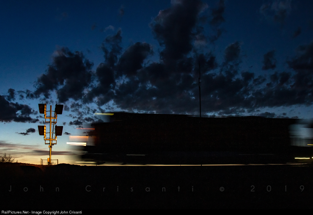 After waiting in the siding for most of the afternoon into the evening, a westbound BNSF loaded LPG train is about to knock down the intermediate signal between Tonville and Hudson, Colorado, on September 7, 2019.