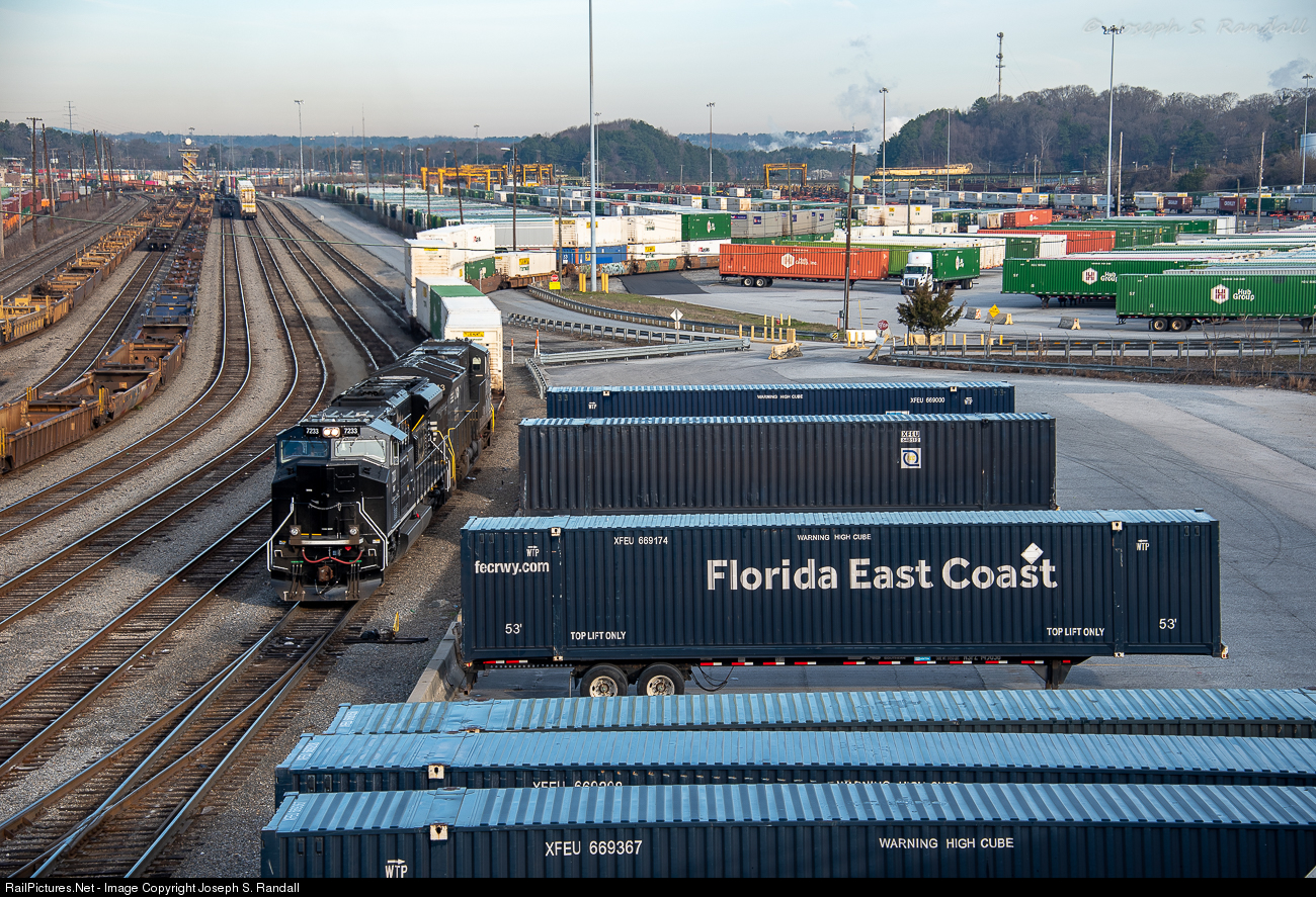 NS train 220 pulls ahead to spot another cut of cars in the receiving yard at Inman. Leading is EMDX 7233, an SD70ACe-T4 being leased by Kansas City Southern that, ironically, was originally built as part of an order for NS before they cancelled it.