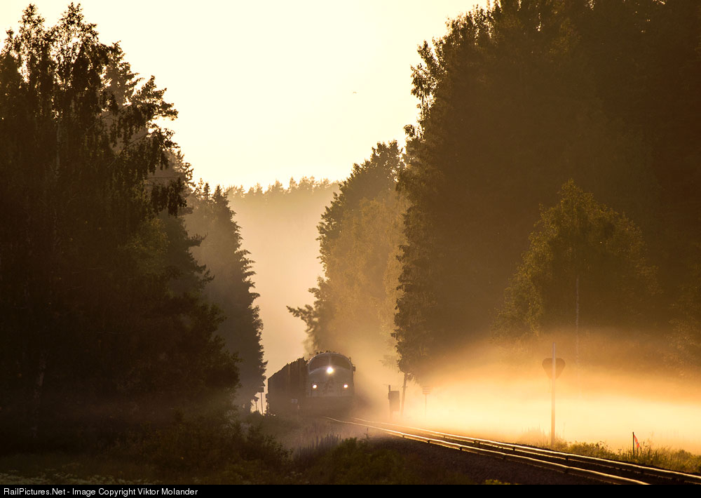| TÅGAB TMY 110 with TÅGAB T43 113 pushing the timber train in the back is here on the Fryksdalsline with Freight train 47032 from Rottneros to Kristinehamn with timber to Vallvik paper mill in Gävle. |