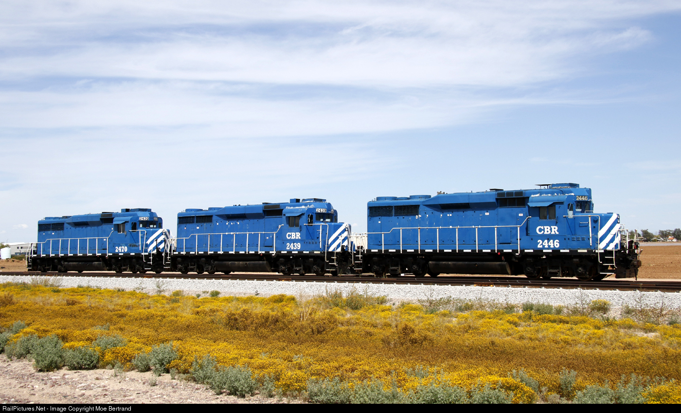 | Three Coos Bay Rail Link GP30s are currently "stored" on the new industrial spur off the Ennis Sub in El Mirage, AZ. They have recently been "sanitized" of most of their former markings. |