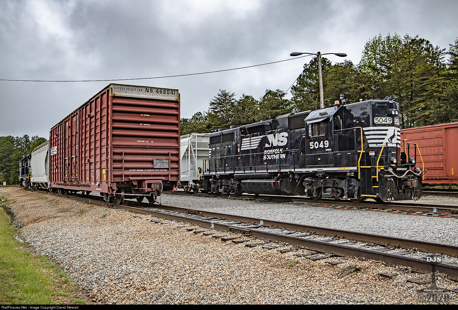| Fresh NS paint adorns the old phase l style 1972 built GP38-2 5049 at McDonough, Georgia in April of 2019. |