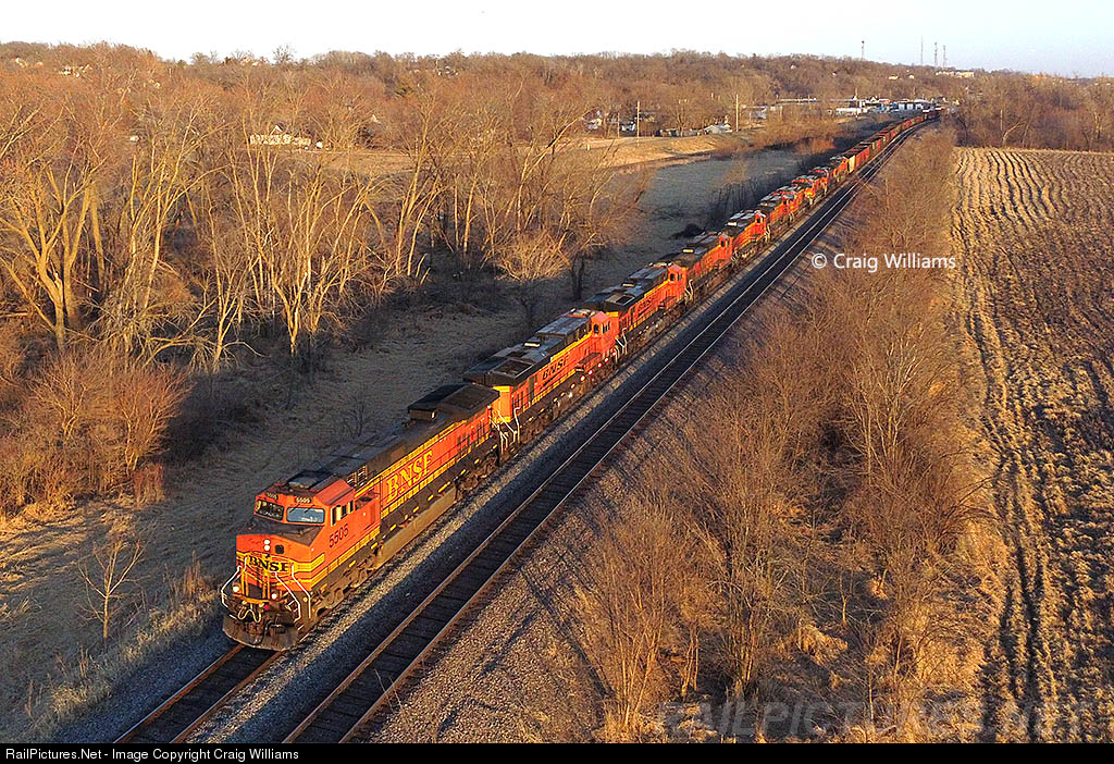 The train has 10 units and has 79 loads, 69 empties, 11,657 tons, and 8289 feet with BNSF's 5505, 7638, 7620, 4683, 4656, 4696, 4637, 4985, 5495, 4642.