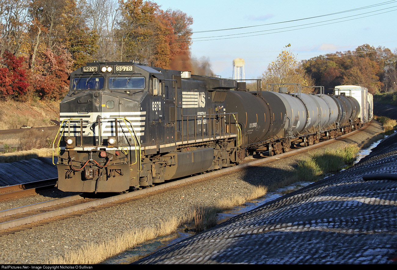 | The now-abolished NS 33K heads west on Conrail's Lehigh Line with NS 8978 acting as solo power. The number boards on the locomotive certainly have seen better days. NS 8978 was rebuilt to become NS 4268 (AC44C6M) in April of 2019. |