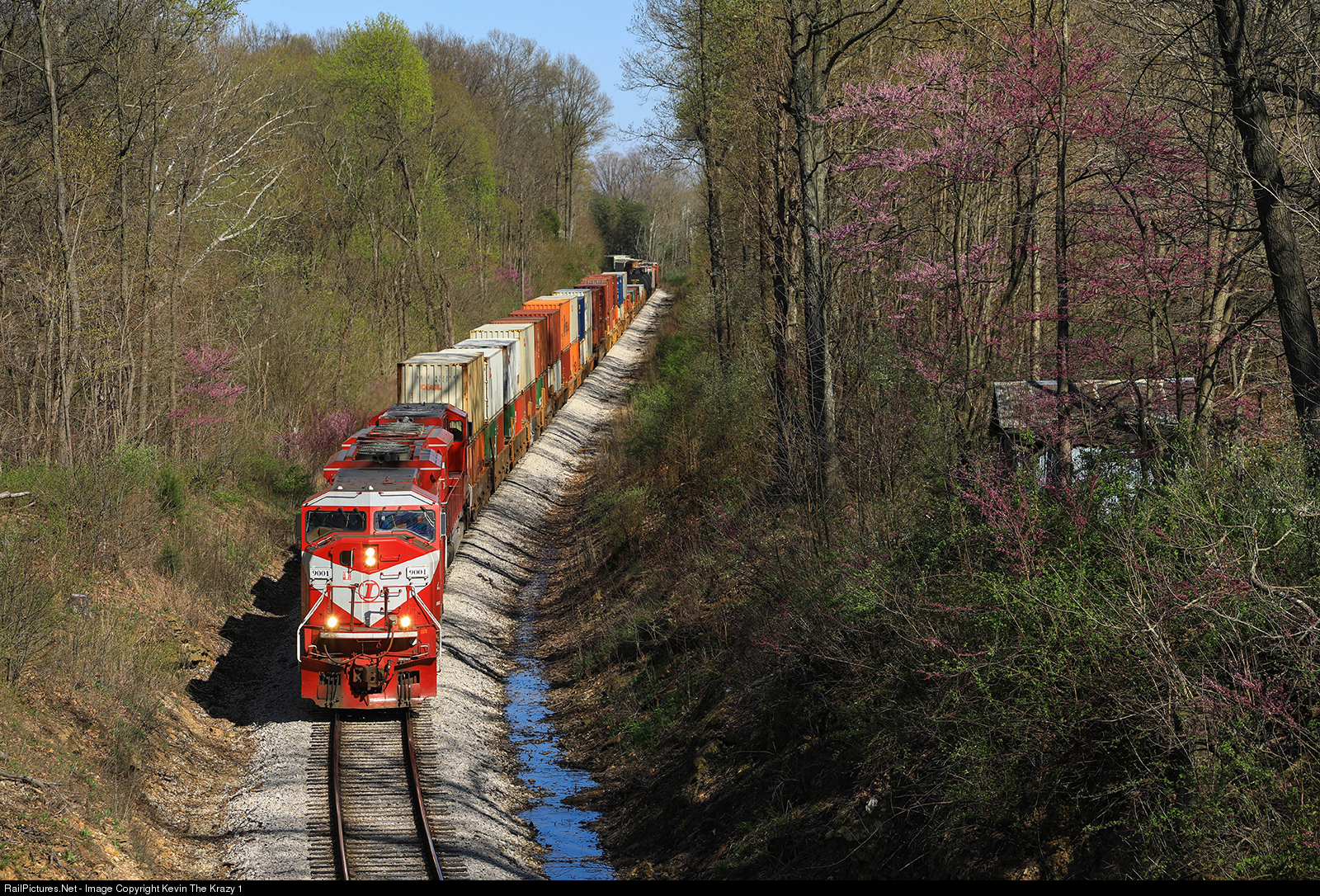 Spring foliage is starting to make a presence in southern Indiana as INRD train SAHW makes its way for Hiawatha Yard.