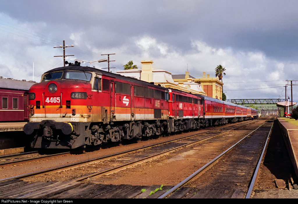 | 4465-4469 with the last northbound Intercapital Daylight service pause at Junee Station, the halfway point between Melbourne and Sydney. |