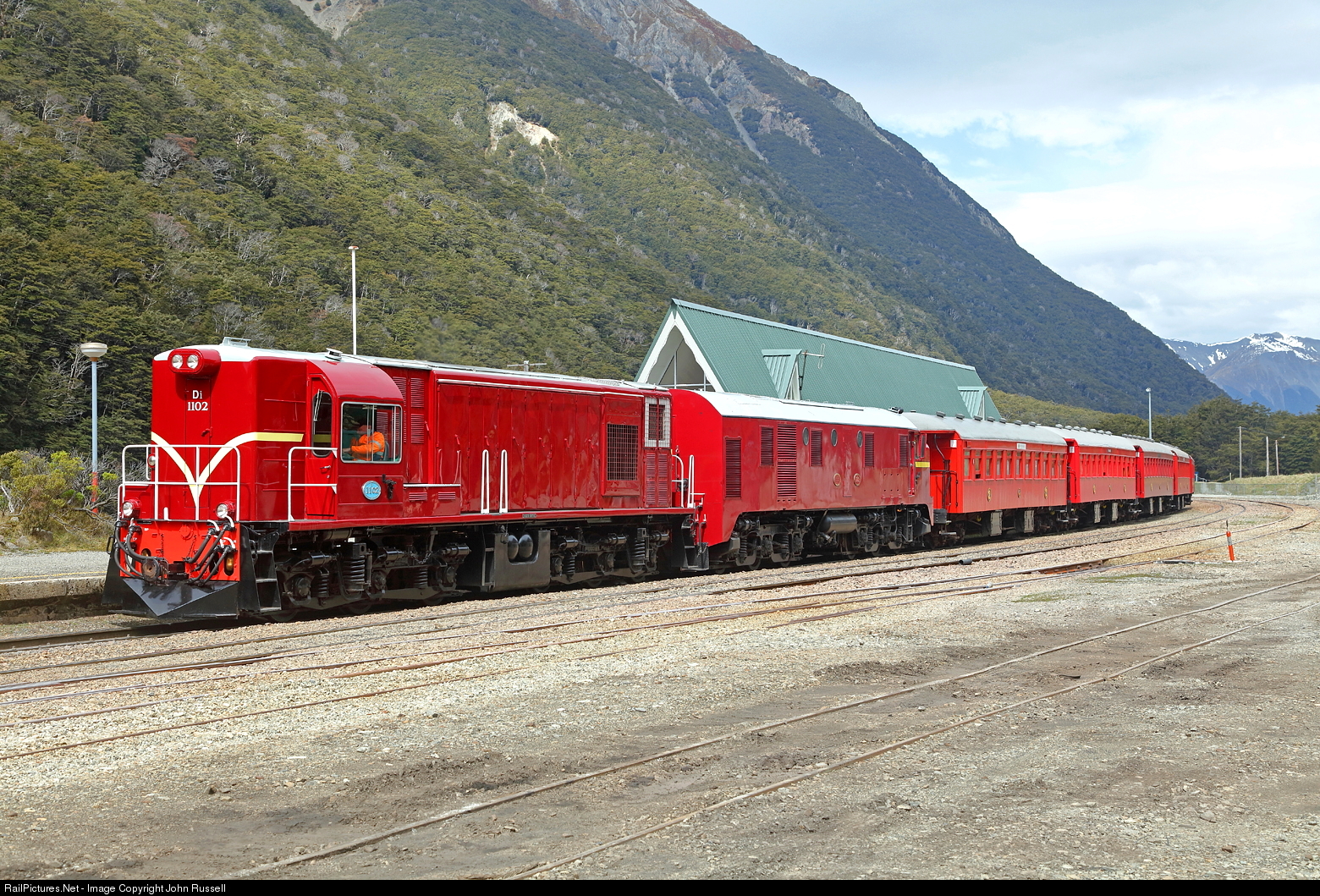 | 1102 was built by English Electric 1966 and bought by Diesel Traction Group in 1989. Finally, after years of restoration work, the return to mainline was marked by a series of railfan specials with 772, starting with a run up to Arthurs Pass in the Southern Alps. Just ahead is Otira tunnel 5.5 miles long on 3% grade now worked by lash ups of modified GE U26C helpers. |