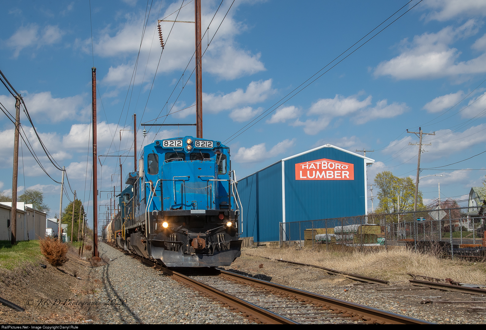 | I moved to Hatboro as a 9 year old child in July of 1987, and in the 21 year I lived there, I never saw a daytime freight on SEPTA's Warminster line. That all changed today as due to SEPTA's reduced schedule due to the COVID-19 pandemic SEPTA is allowing the PN to run their normally overnight W230 to run during the day. The train is seen passing the Hatboro Lumber facility. The lumber yard was once serviced by the Reading Railroad a number of years back as evidenced by the siding still sitting in the weeds. |