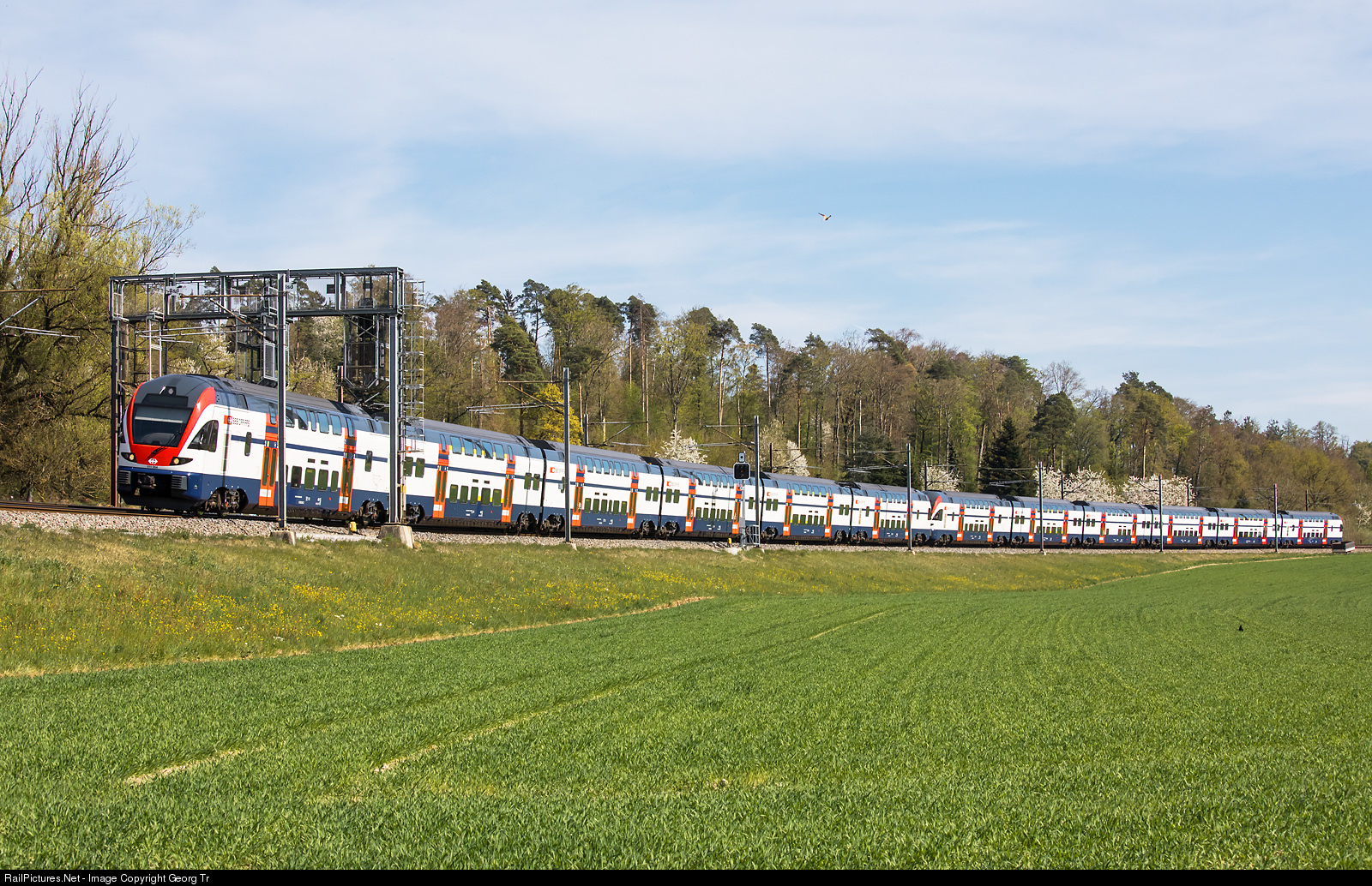 Peak hour train of the S 7 line from Winterthur via Kloten-Zürich-Meilen to Rapperswil between Effretikon and Bassersdorf. RABe 511 # 054 and another of the same series in multiple control are offering 1070 seats in first and second class, but in the Corona crisis there are used estimated less then 10 % of them.