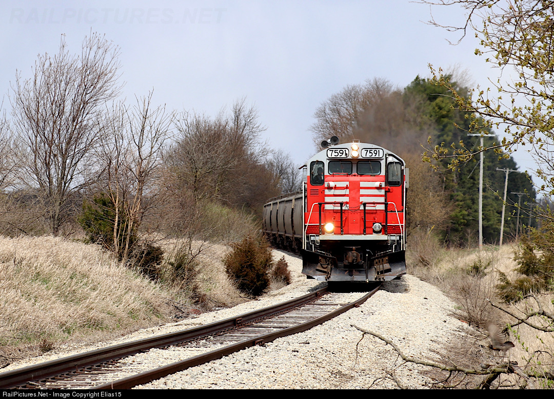 | BLOL 7591 & a LTEX GP38-2 leading some NS grain loads out of the town of Chatsworth, IL as they head through a small S Curve just South of town. |