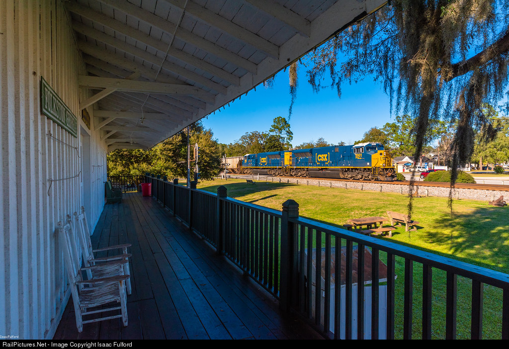 | On a spotless spring afternoon CSX southbound freight Q453 is lead by a double pairing of CSX's new ST70AH's. Framed by the gorgeous ACL depot and spanish moss these newer motors look right at home in the classic CSX boxcar scheme. |