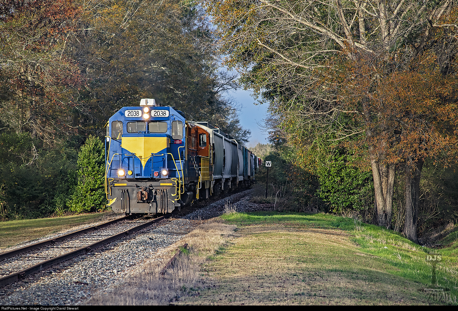 GWI's Heart of Georgia, Cordele Turn is eastbound at Cobb, Georgia on December 11, 2019 with the only remaining HOG painted unit, GP38-2 2038 which incidentally was the last unit placed into service before the GWI takeover in May of 2017. HOG 2038 is the former N&W/NS high hood GP35 1320.