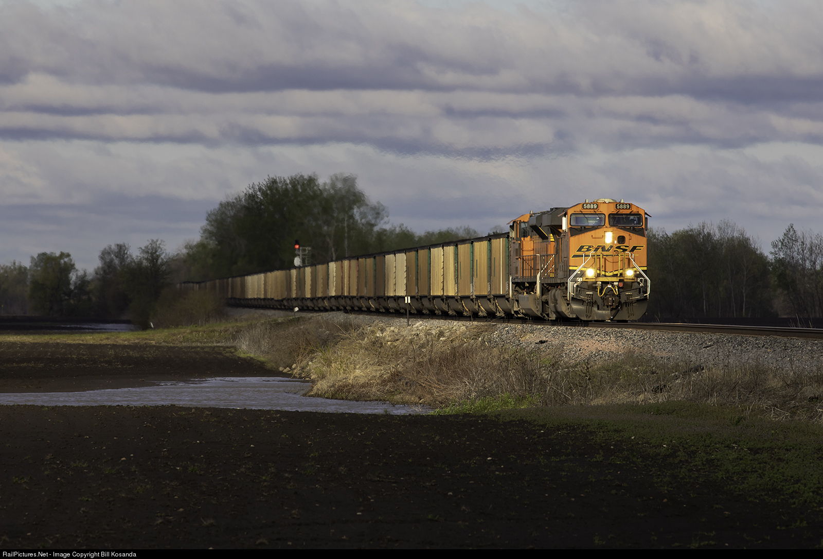 Sitting trackside in the middle of an unplowed farmer's field was just the ticket to cure the boredom of days that have merged together into one long blur. Normally a random cloud will ruin my planned shot, but in this case a short break in the clouds illuminated this westbound loaded coal train near the Missouri River.