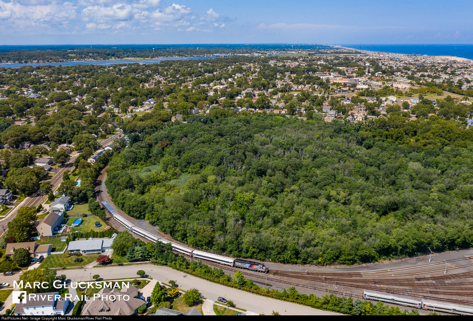 | Summer Looping. NJ Transit Train 4741 has NJTR 4201 (GP40PH-2B, ex-Conrail 3053 GP40, exx-Penn Central 3053, neƩ-New York Central Railroad 3053) in the lead as it comes around the loop in Bay Head, New Jersey on the afternoon of Saturday, August 3, 2019. In the next months, the control point and switches at "Borne" would be cut in, making it possible to use the loop or pull directly into Bay Head yard to facilitate turning the train and/or have the motor east out for fueling. |