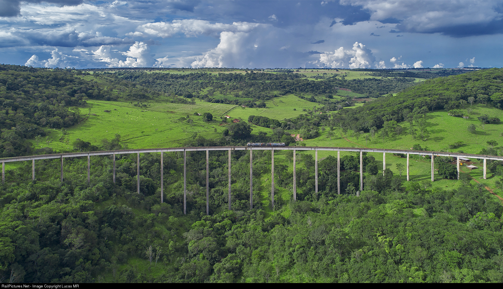 Train W09 crossing the huge "Fundão" viaduct, near Araguari city.