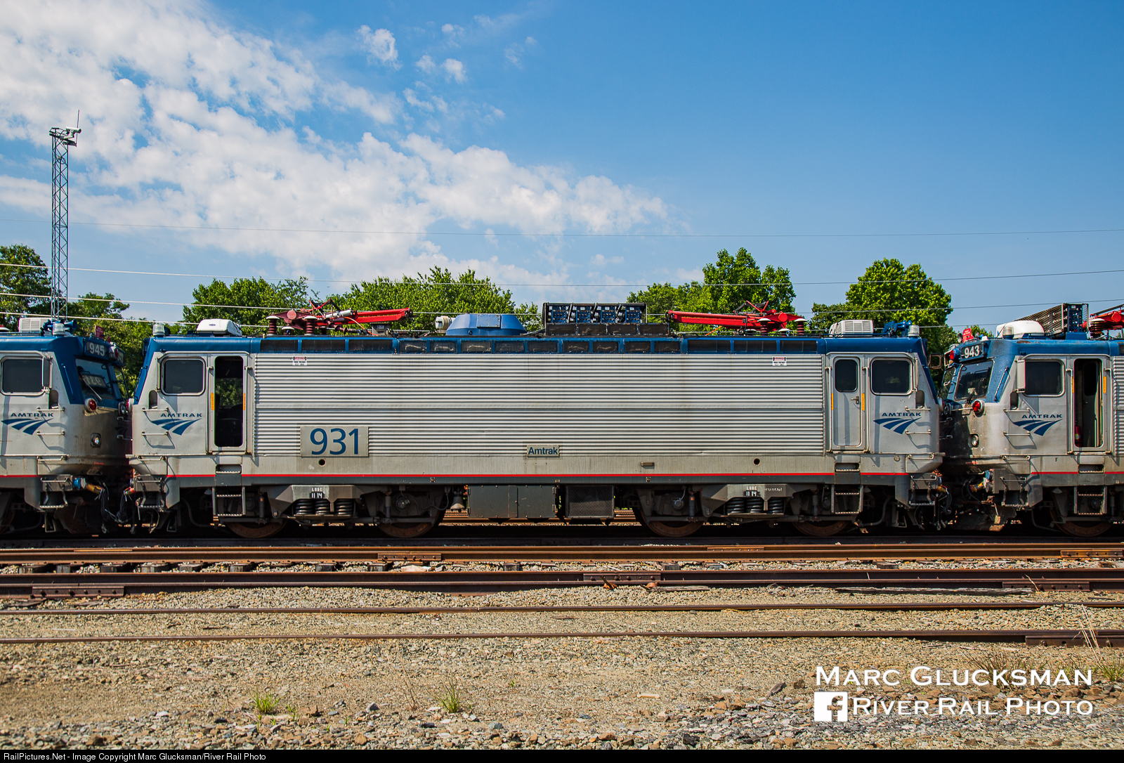 Just hanging out. Amtrak 931 (Phase V, AEM7) is one of many units sitting in Bear, DE on June 20, 2016. A long line of retired AEM7s and HHP8s was resident here for a time. But since then, in 2019, 15 AEM-7 AC rebuilt models were moved to Rhode Island. Some of the remaining units have been donated, sold, or scrapped. If you want to see an Amtrak AEM-7 today, 915 lives at the Railroad Museum of Pennsylvania, while 945 is in the collection at the Illinois Railway Museum.